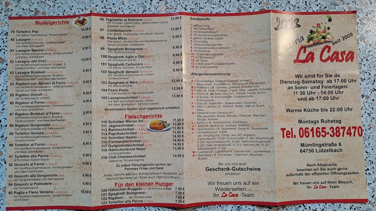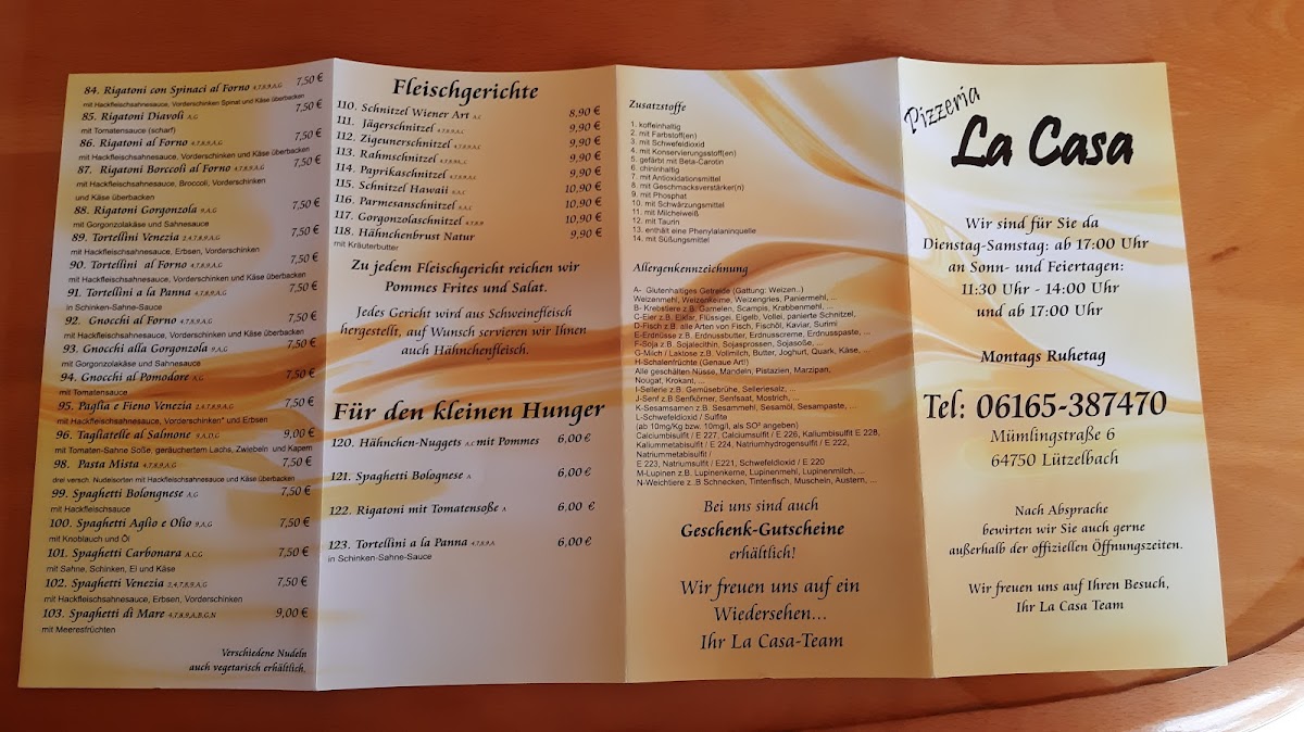Welcome to Pizzeria La casa, a cozy gem located at Mümlingstraße 6 in Lützelbach, Germany. This charming eatery is revered for its delectable selection of pizzas and authentic Italian cuisine. Customers rave about the Pizza Rucola, featuring fresh toppings that elevate the experience. The pasta dishes, while generally praised, have room for improvement, particularly the Spaghetti Carbonara. Regulars appreciate the friendly service and the atmosphere, making it a perfect spot for family gatherings and special occasions.